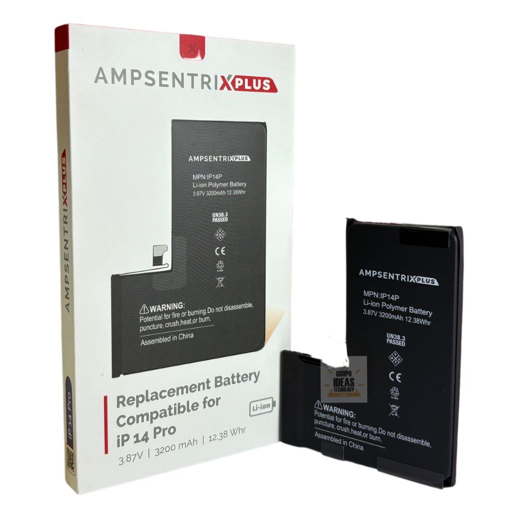 La Batería iPhone 14 Pro Ampsentrix Plus combina economía, seguridad y durabilidad. Es la mejor elección para mantener tu iPhone 14 Pro con la misma autonomía y potencia de fábrica.