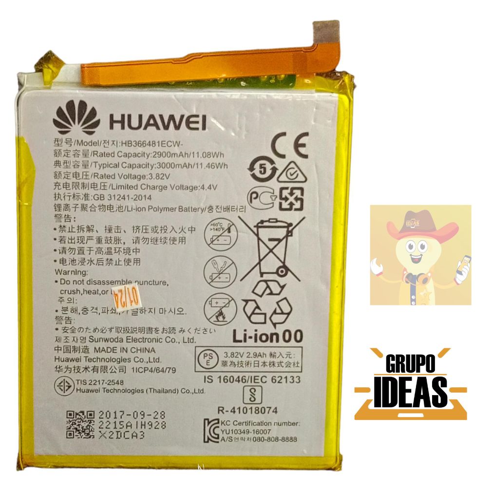 BATERIA BLISTER HUAWEI P9 LITE – P20 LITE – P SMART – Y7 2018 – P10 LITE – Y6 2018 Generica