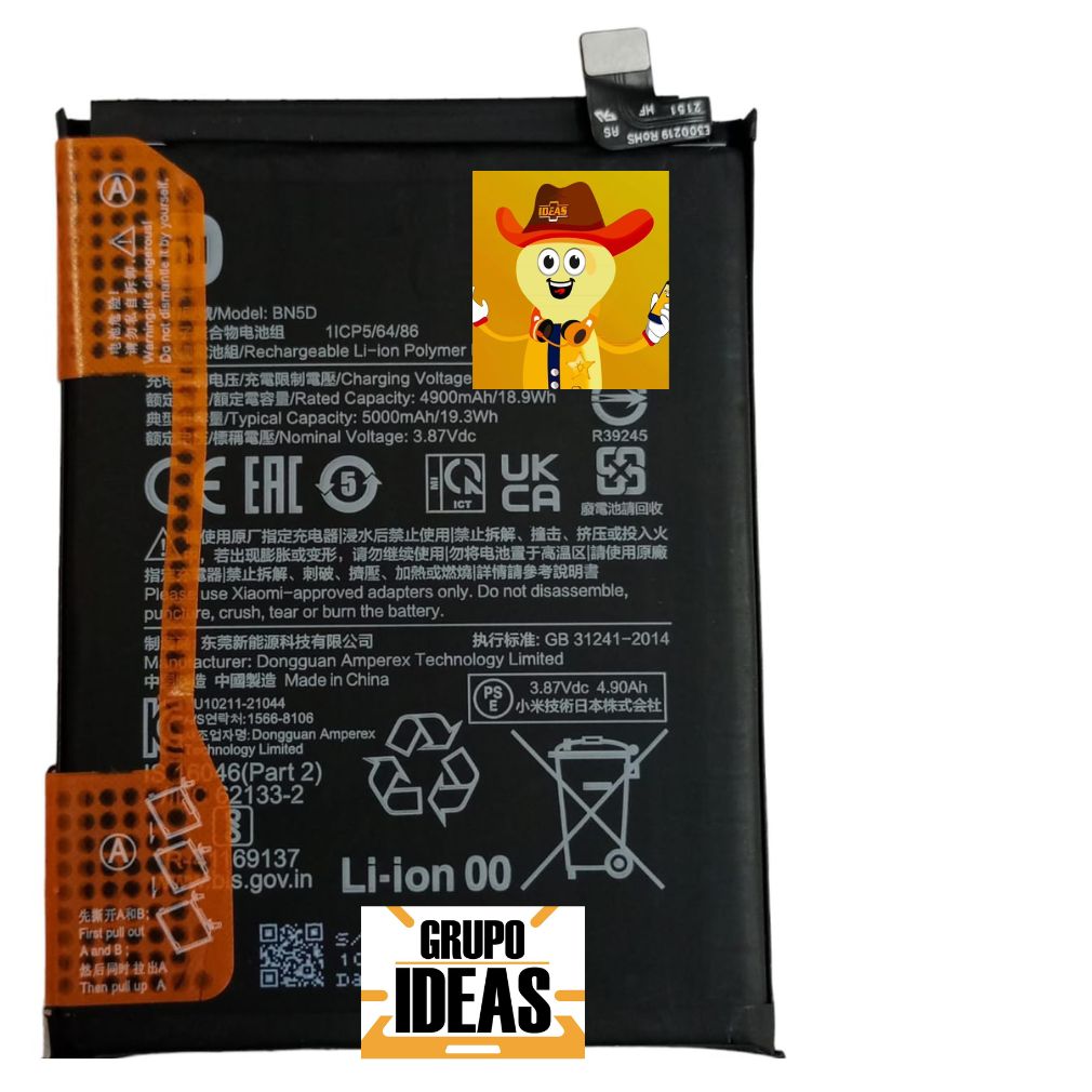 Fabricada para Xiaomi Redmi 10 5g con código BN5D. Verifica el modelo de tu dispositivo en la sección Ajustes > Acerca del teléfono o revisa la referencia de la batería original antes de realizar la compra.Características técnicas