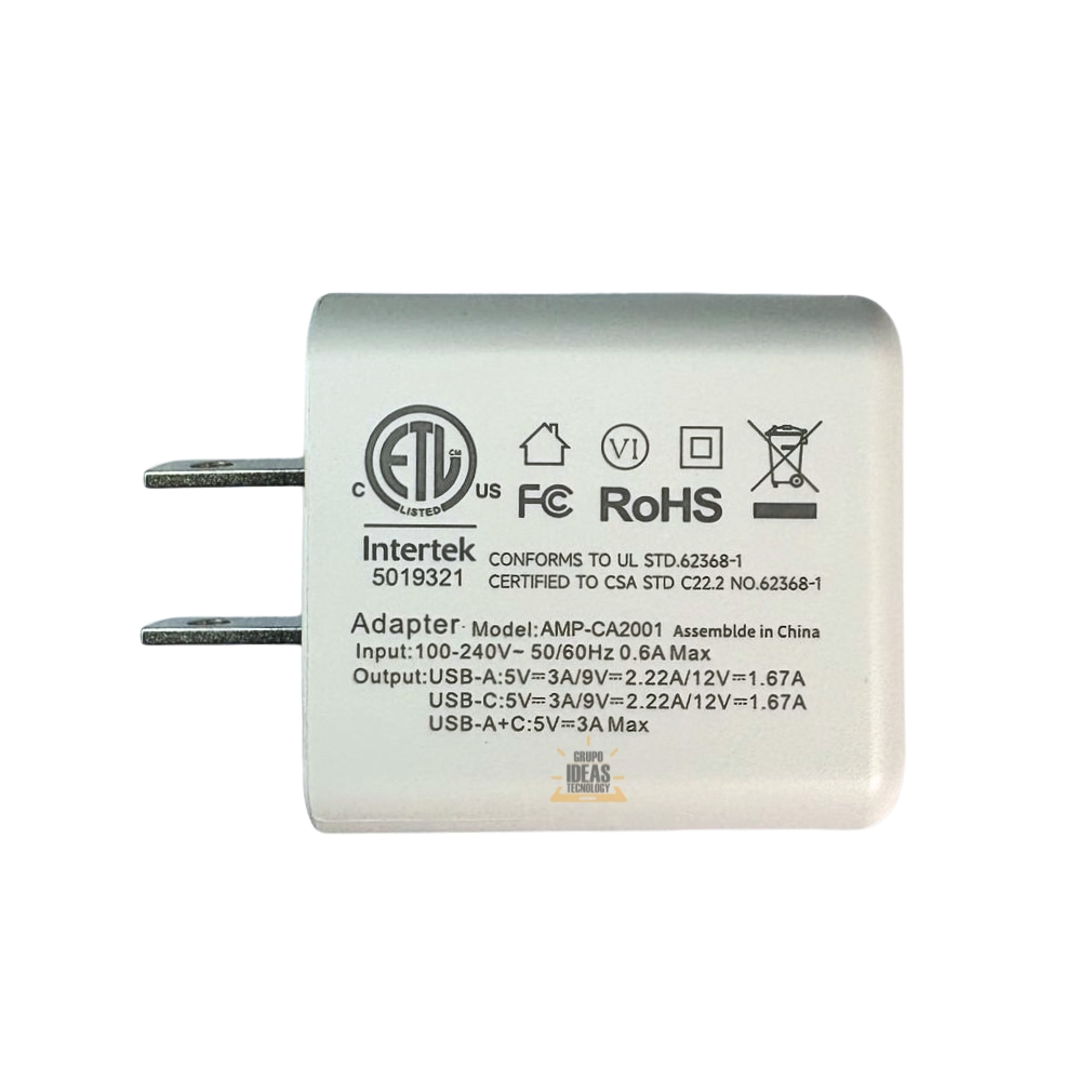 Gracias a su diseño de puertos duales, este cargador permite cargar dos dispositivos de forma práctica, adaptándose tanto a equipos modernos con USB-C como a dispositivos que aún utilizan conexión USB-A. Su estructura compacta y ligera lo convierte en una opción ideal para el hogar, la oficina o viajes.
