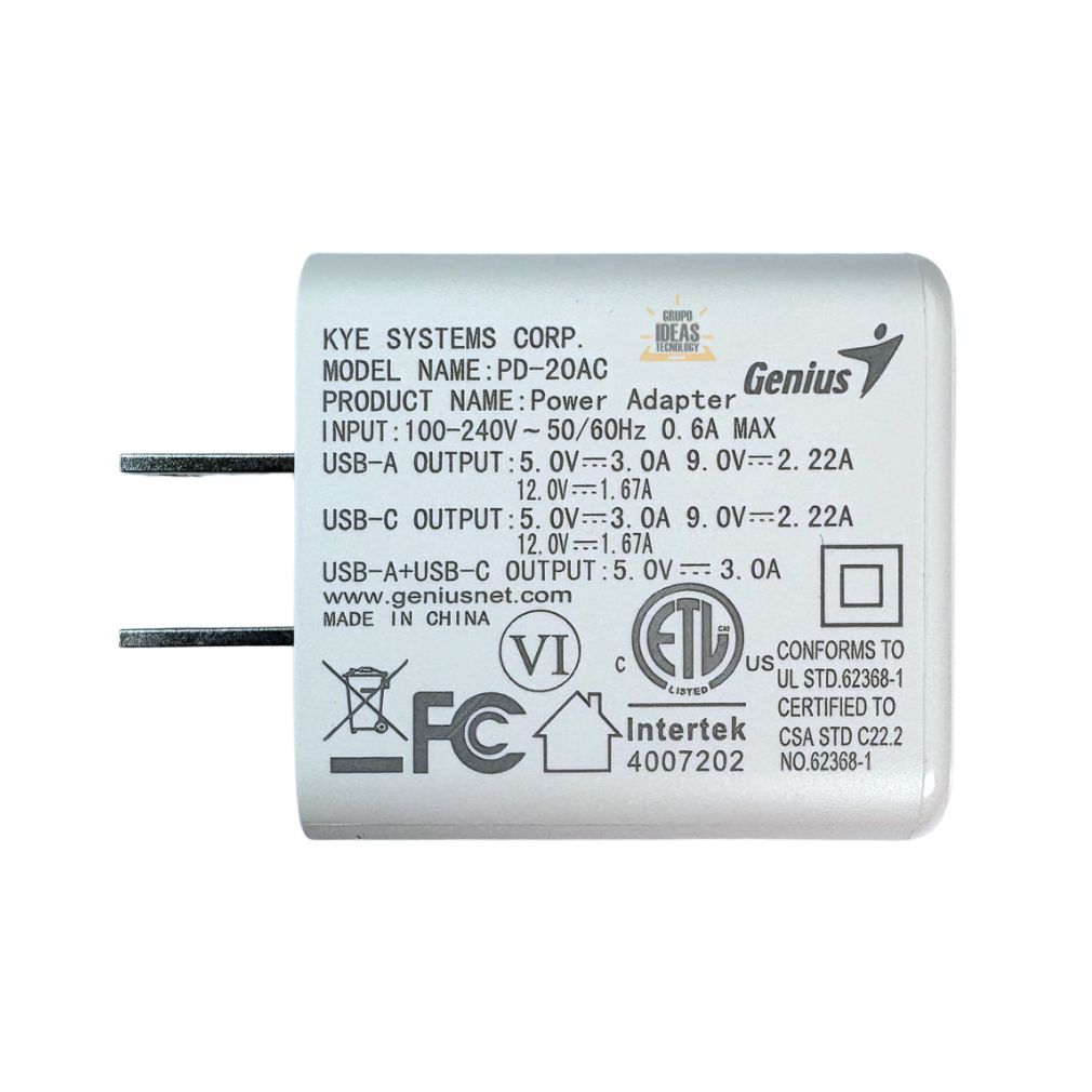 Cargador Genius Pd-20ac Usb-c 20w Carga Rapida