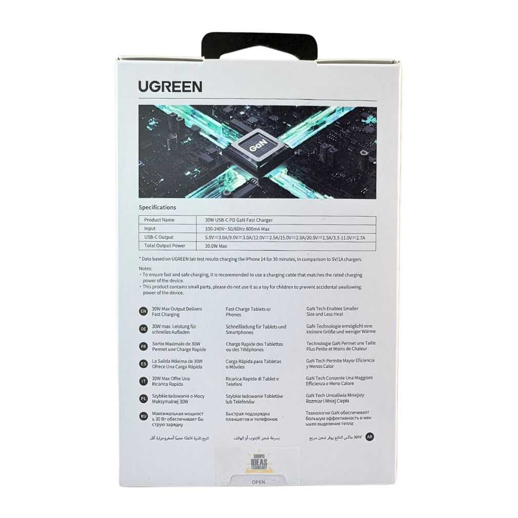 El Cargador UGREEN Robot Mini 30W GaN USB-C Púrpura está diseñado para ofrecer una carga rápida, eficiente y segura en un formato compacto con diseño interactivo. Gracias a la incorporación de la avanzada tecnología GaN (Nitruro de Galio), este cargador proporciona un rendimiento superior con menor generación de calor y mayor eficiencia energética en comparación con cargadores convencionales de silicio.