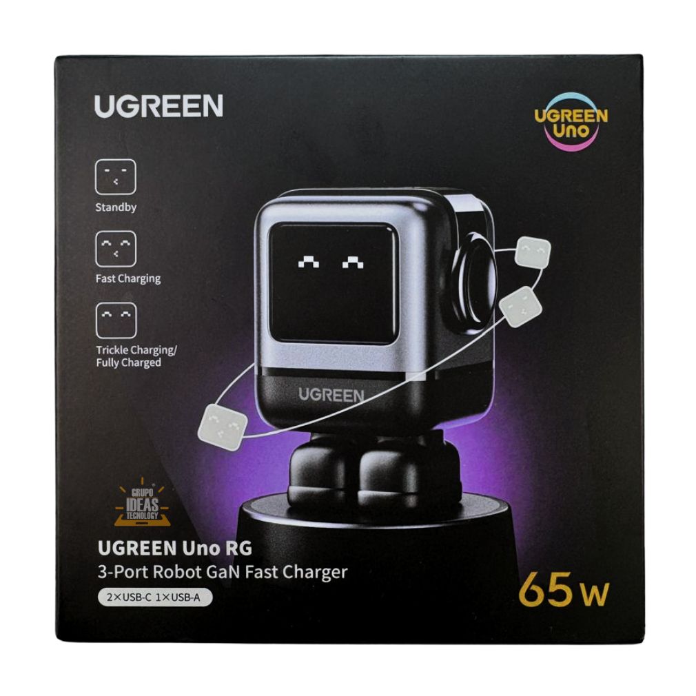 Cargador Ugreen Uno Robot 65W GaN USB-C Negro Carga Rápida PD