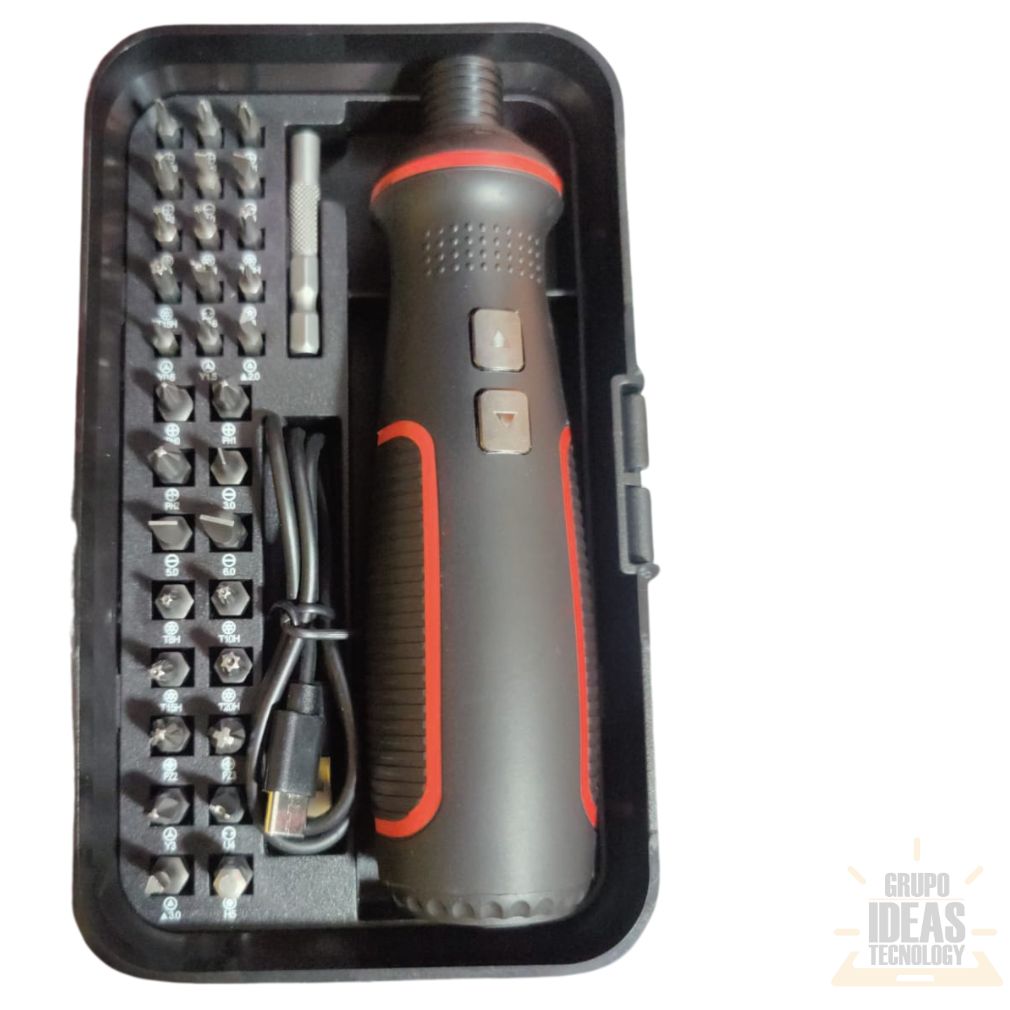 Destornillador Eléctrico 41 in 1 9907 es una herramienta completa para trabajos de reparación electrónica y mantenimiento técnico. Permite desmontar y montar tornillos pequeños de forma rápida y precisa.Incluye 41 puntas intercambiables. Ofrece amplia compatibilidad con celulares, tablets, laptops y otros dispositivos electrónicos. Es ideal para cubrir distintos tipos de tornillos sin cambiar de herramienta.El Destornillador Eléctrico 9907 funciona de manera eléctrica. Reduce el esfuerzo manual y ahorra tiempo. Es perfecto para trabajos repetitivos y uso continuo en el taller.Su diseño es compacto y cómodo. Facilita el agarre y el control durante el uso. Ayuda a reducir la fatiga en jornadas prolongadas.