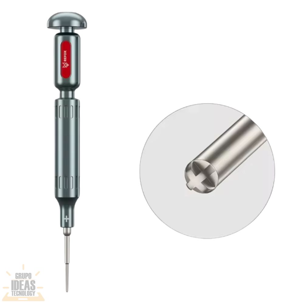 Destornillador Refox 3D RS3 Philips es una herramienta diseñada para trabajos de reparación electrónica que requieren precisión. Permite ajustar y retirar tornillos tipo Philips de forma segura y controlada.Su punta Philips encaja con exactitud en el tornillo. Evita que la cabeza se dañe o se barra. Esto facilita desmontajes limpios y ordenados en equipos electrónicos.El Destornillador Refox 3D RS3 cuenta con un diseño ergonómico tipo 3D. Se adapta bien a la mano. Ofrece un agarre firme durante el trabajo.Es ligero y fácil de manejar. Permite trabajar en espacios reducidos sin esfuerzo. Ideal para celulares, tablets y otros dispositivos electrónicos.Está fabricado con materiales resistentes. Soporta el uso continuo en talleres técnicos. Es una herramienta confiable para profesionales y estudiantes de electrónica.