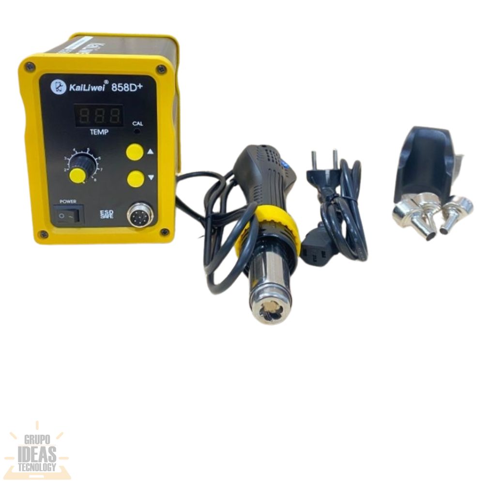 Estación de Calor Kailiwei 858D+ diseñada para trabajos de reparación electrónica que requieren control térmico preciso, estabilidad continua y un rendimiento confiable. Es una herramienta profesional muy utilizada en talleres técnicos y servicio especializado.