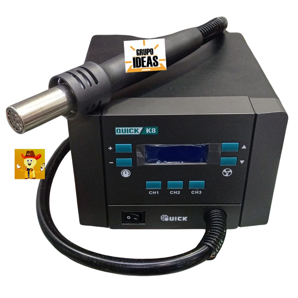 Estación de Calor Quick K8 diseñada para trabajos de reparación electrónica que requieren alto control térmico, estabilidad continua y rendimiento profesional. Es una herramienta avanzada ideal para talleres técnicos y servicio especializado.