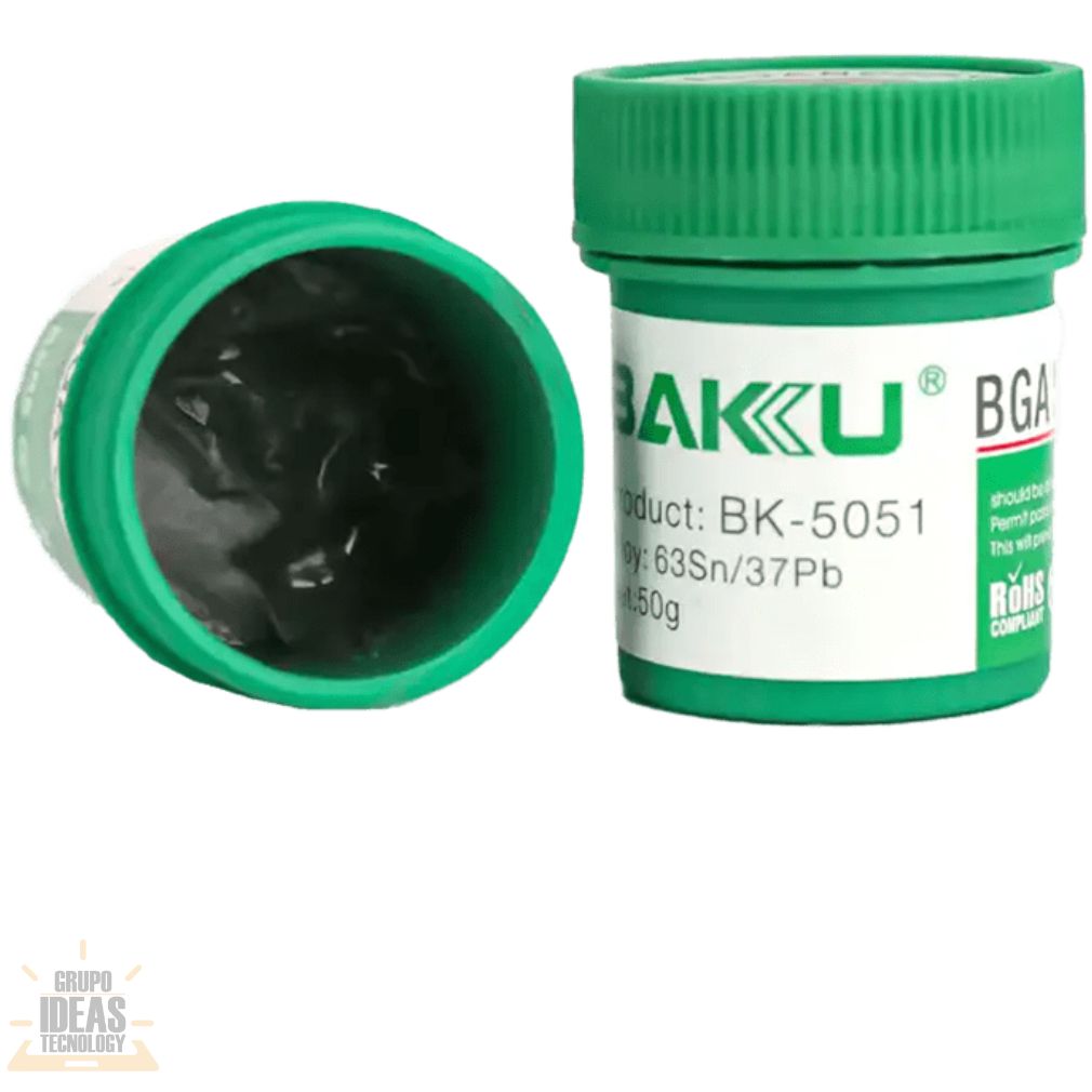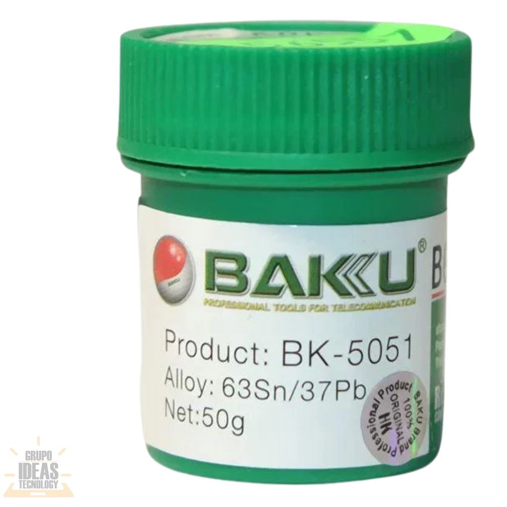 Estaño Pasta Baku 5051 es un consumible profesional diseñado para trabajos de soldadura electrónica y microsoldadura. Es ideal para reparación de placas, soldadura SMD y procesos de rework en talleres técnicos.Esta pasta de estaño permite una aplicación controlada y precisa. Facilita el trabajo en componentes pequeños y delicados. Ayuda a obtener uniones firmes sin exceso de material.El Estaño Pasta Baku 5051 ofrece una fusión uniforme y estable. Mejora la adherencia sobre pads y terminales. Reduce residuos y mejora el acabado final de la soldadura.Su formato en pasta es compatible con estaciones de calor, cautines y procesos de retrabajo. Es una opción confiable para uso diario en reparación electrónica y mantenimiento técnico.