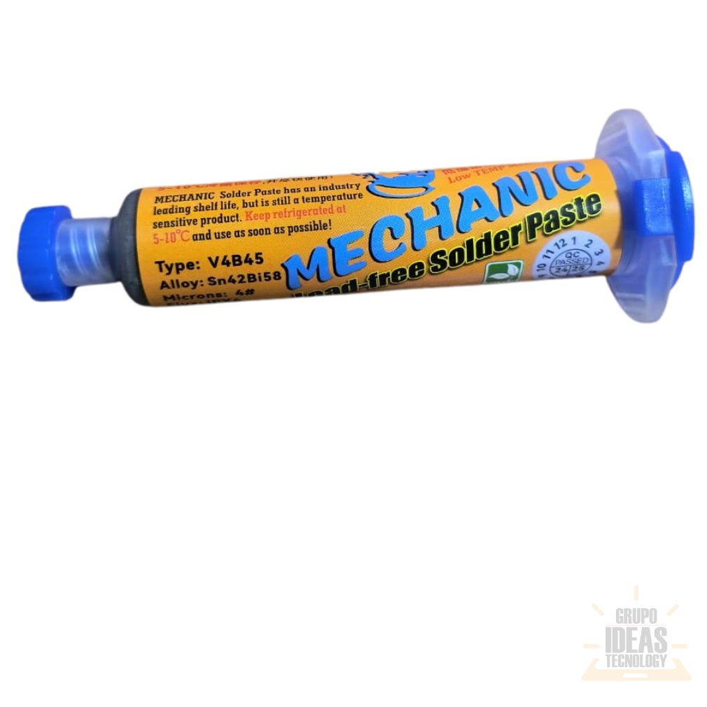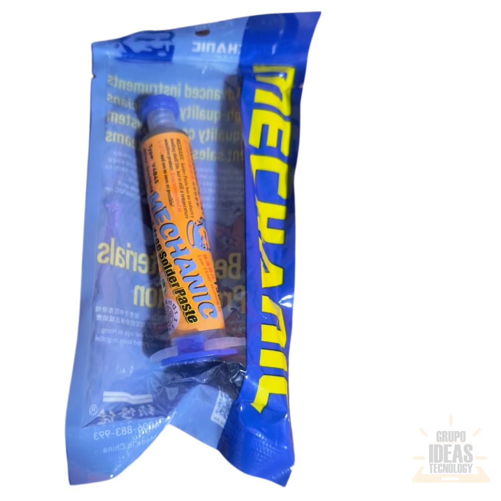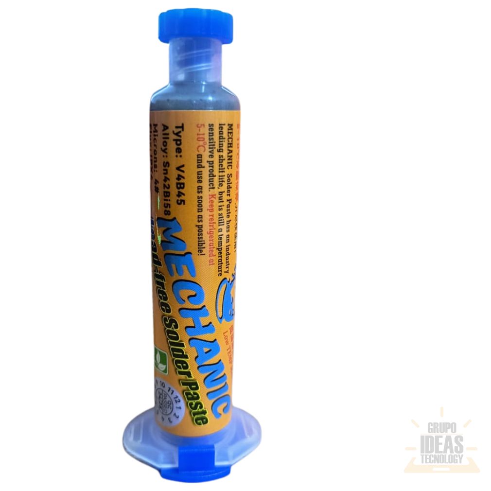 Estaño Pasta Mechanic 138° (40 g) en Jeringa es un consumible profesional para trabajos de soldadura de muy baja temperatura. Está diseñado para reparación electrónica, microsoldadura y rework en componentes sensibles al calor.Este estaño en pasta funde a 138 °C. Permite trabajar con mayor seguridad sobre placas delicadas. Reduce el riesgo de dañar pads, pistas y componentes SMD durante la soldadura o el desoldado.El formato en jeringa facilita una aplicación precisa y controlada. Permite dosificar exactamente la cantidad necesaria. Mejora el control del material y ayuda a lograr uniones limpias, firmes y bien definidas.El Estaño Pasta Mechanic 138° ofrece fusión rápida y uniforme. Es compatible con estaciones de calor, cautines y procesos de rework y reballing. Su presentación de 40 g es ideal para uso técnico diario en talleres profesionales.