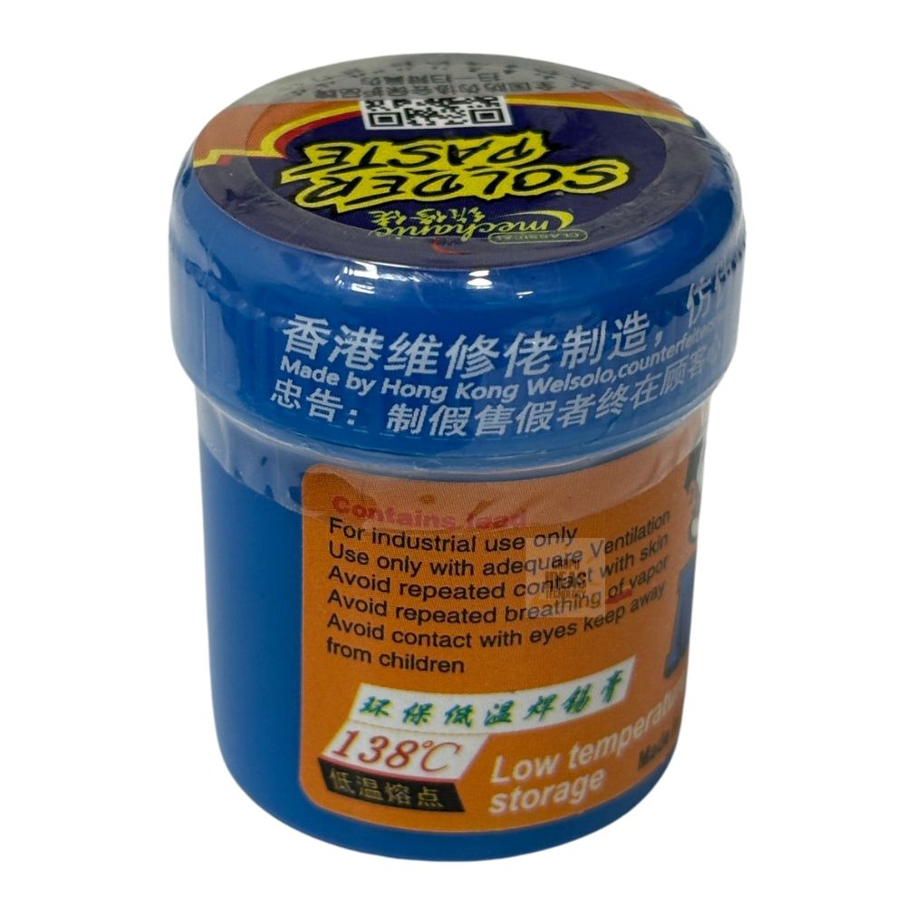 Estaño Pasta Mechanic 138 (42 g) para microsoldadura y reballing; aplicación precisa y acabado profesional.