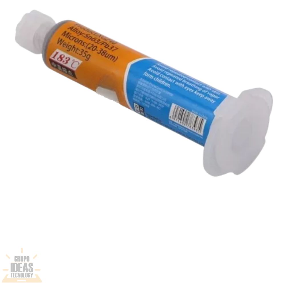 Estaño Pasta Mechanic 183° (35 g) en jeringa para soldadura electrónica precisa y controlada.