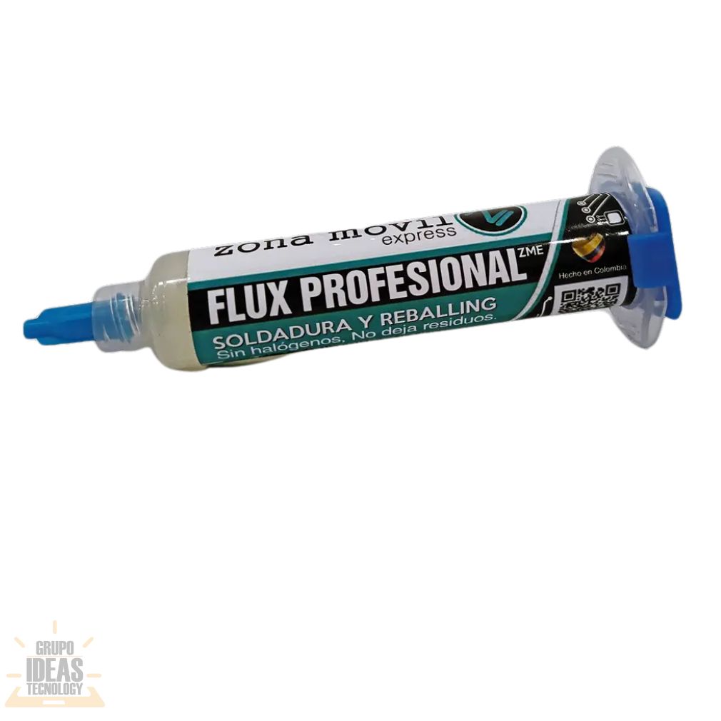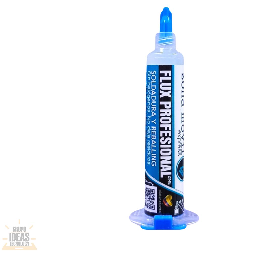 Flux ZME es un insumo profesional para trabajos de soldadura y microsoldadura en reparación electrónica. Facilita la fusión del estaño y ayuda a obtener uniones limpias y bien definidas.Este flux reduce la oxidación durante el proceso de soldadura. Mejora la adherencia del estaño sobre pads, pistas y terminales. Permite trabajar con mayor control y precisión, incluso en componentes pequeños y delicados.El Flux ZME es ideal para reparación de celulares, tablets y placas electrónicas. Es compatible con soldadura SMD, rework y retrabajo de componentes. Ayuda a lograr un acabado más limpio y profesional en cada reparación.Su aplicación es sencilla y eficiente. Reduce residuos y evita soldaduras frías. Es una opción confiable para uso diario en talleres técnicos.