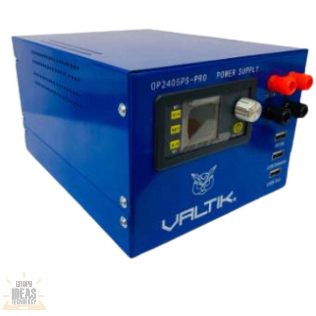 Fuente de Poder Valtik diseñada para suministrar energía estable y controlada en trabajos de reparación y diagnóstico electrónico. Ofrece una salida confiable que ayuda a proteger dispositivos sensibles durante pruebas y procesos técnicos.