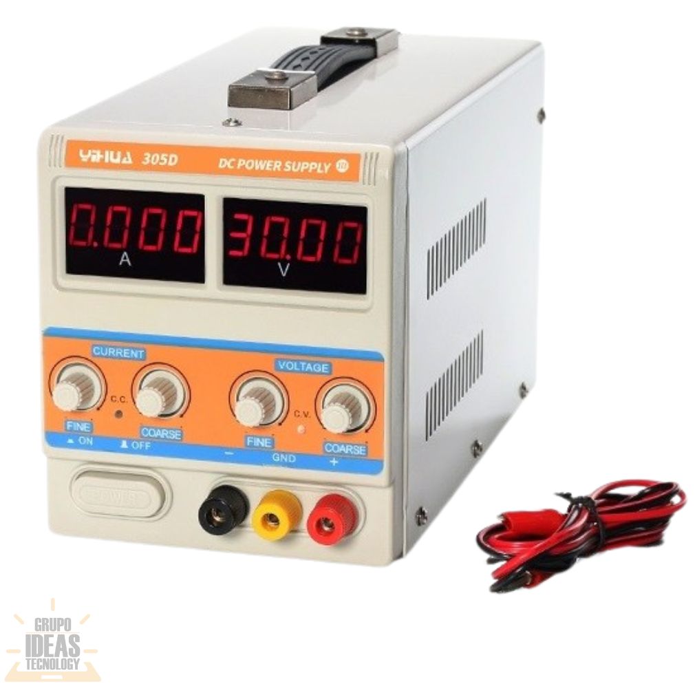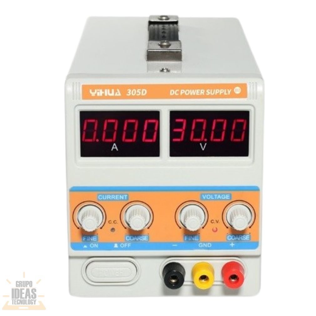 Fuente de Poder Yihua 305 4 Dígitos diseñada para ofrecer energía regulada y estable en trabajos de reparación y diagnóstico electrónico. Permite ajustar el voltaje y la corriente con precisión, lo que ayuda a trabajar de forma segura con equipos sensibles.