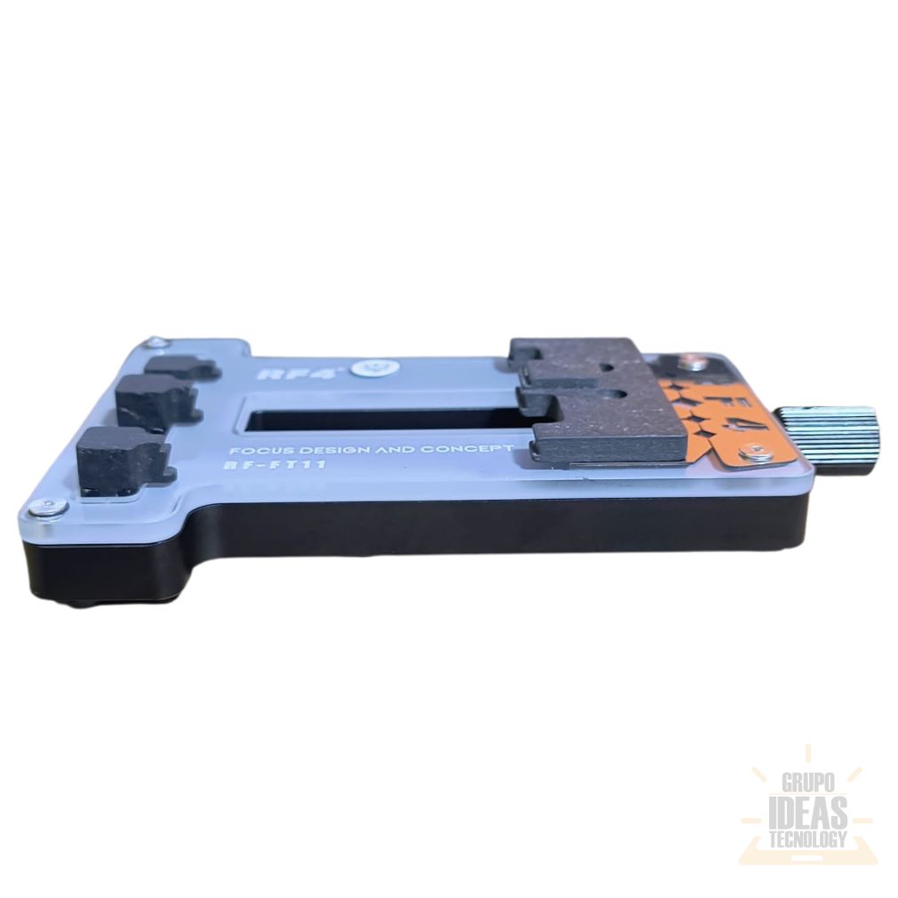 Holder RF4 FT-11 es un accesorio profesional diseñado para sujetar circuitos integrados y componentes electrónicos durante trabajos de soldadura y desoldadura. Mantiene el IC firme y estable, evitando movimientos que puedan dañar el chip o la placa.Este holder es ideal para trabajos de microsoldadura. Permite aplicar calor de forma precisa y controlada sobre el componente. Esto facilita la remoción o instalación de IC pequeños y sensibles. El resultado es un trabajo más limpio y seguro.El Holder RF4 FT-11 se utiliza junto a precalentadoras y estaciones de aire caliente. Mejora el control del técnico y reduce errores durante la reparación. Es una herramienta muy usada en talleres de reparación electrónica profesional.Su diseño es compacto y resistente. Ocupa poco espacio en la mesa de trabajo. Es fácil de usar y no requiere ajustes complejos. Solo colocar el IC, fijarlo y comenzar a trabajar.