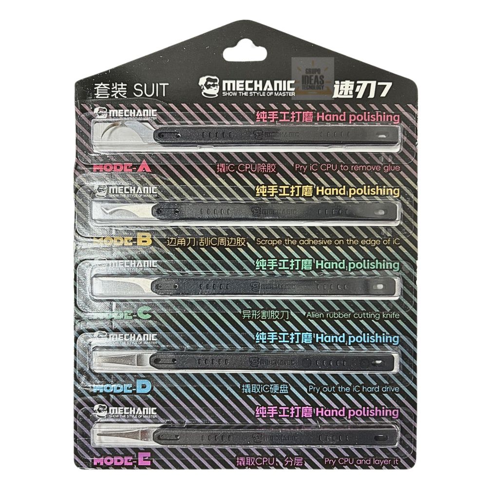 Juego de Cuchillas Mechanic x5 Unidades ideal para corte fino y trabajos de precisión en reparación electrónica.