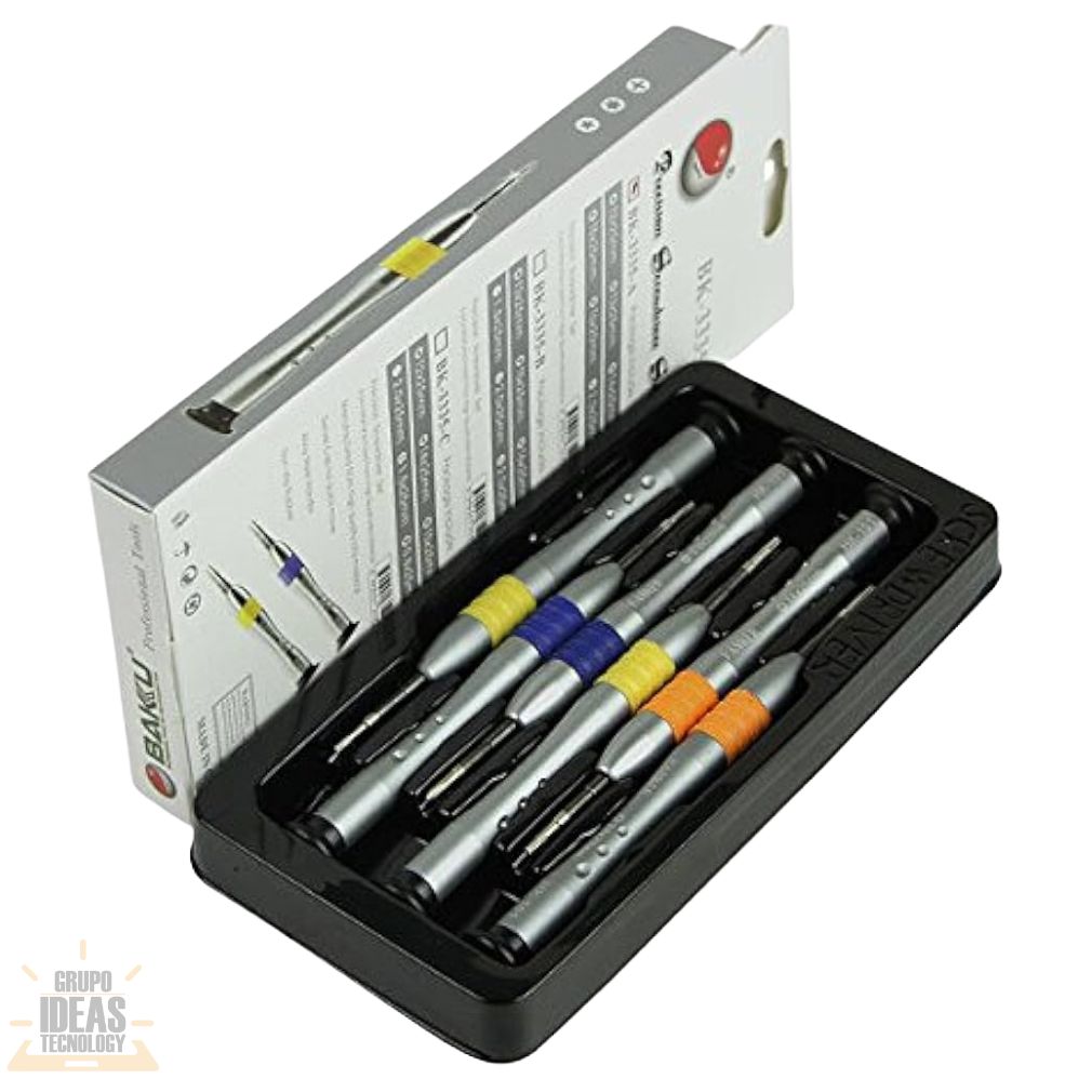 Juego de Destornilladores BK 3335 es un kit diseñado para trabajos de reparación electrónica que requieren precisión y cuidado. Permite desmontar y montar dispositivos sin dañar tornillos ni componentes internos.Este juego incluye varias puntas intercambiables. Facilita el trabajo con tornillos pequeños y delicados. Es ideal para celulares, tablets, laptops y otros equipos electrónicos.El Juego de Destornilladores BK 3335 ofrece mangos cómodos y bien equilibrados. Se adaptan correctamente a la mano. Ayudan a mantener el control durante todo el proceso de reparación.Las puntas están fabricadas con material resistente. Mantienen su forma con el uso continuo. Garantizan un ajuste preciso y seguro en cada tornillo.El estuche incluido permite mantener todas las piezas organizadas. Facilita el transporte y el almacenamiento. Es práctico para talleres técnicos y uso diario.Este kit es una opción confiable para técnicos, estudiantes y centros de reparación. Ayuda a trabajar de forma ordenada, eficiente y profesional.