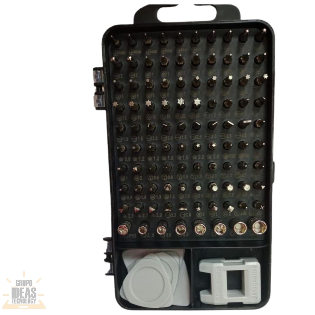 Juego de Destornilladores Ideas es un kit esencial para trabajos de reparación electrónica y mantenimiento técnico. Está diseñado para ofrecer precisión, control y seguridad al manipular tornillos pequeños.Este juego permite desmontar y montar dispositivos sin dañar tornillos ni componentes internos. Es ideal para celulares, tablets, laptops y otros equipos electrónicos. Facilita trabajos limpios y ordenados.El Juego de Destornilladores Ideas incluye varias puntas intercambiables. Permite adaptarse a distintos tipos de tornillos. Es una solución práctica para tareas de uso diario en el taller.Los mangos son cómodos y fáciles de sujetar. Ofrecen buen control durante el uso. Ayudan a reducir la fatiga en trabajos prolongados.Las puntas están fabricadas con material resistente. Mantienen su forma con el uso continuo. Garantizan un ajuste firme y preciso en cada tornillo.El estuche ayuda a mantener todas las piezas organizadas. Facilita el transporte y el almacenamiento. Ideal para técnicos, estudiantes y uso doméstico.