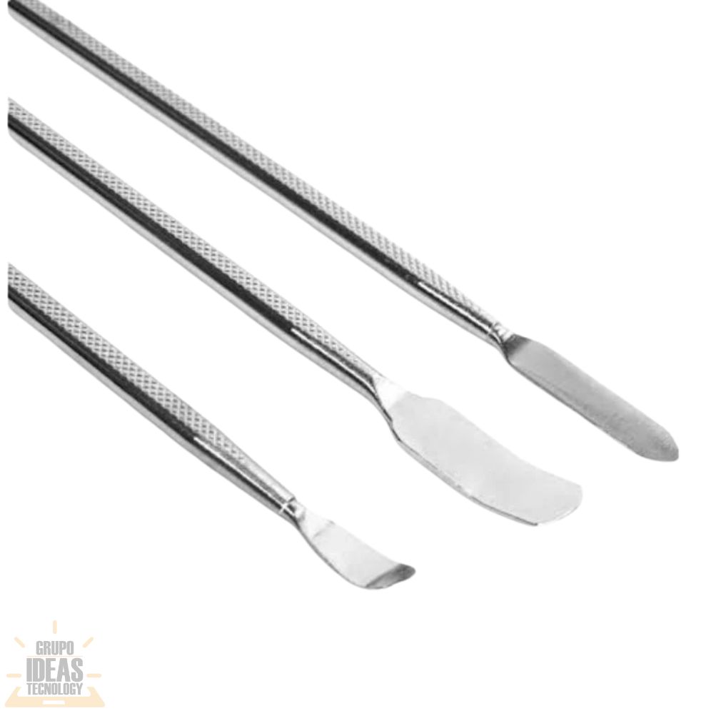 El Juego Palas Relife RL-065 X3 es un set profesional de herramientas de apertura diseñado para el desmontaje seguro y preciso de dispositivos electrónicos. Fabricadas en acero al carbono de alta calidad, estas palas ofrecen la resistencia, elasticidad y control necesarios para trabajos delicados sin dañar carcasas ni componentes internos.