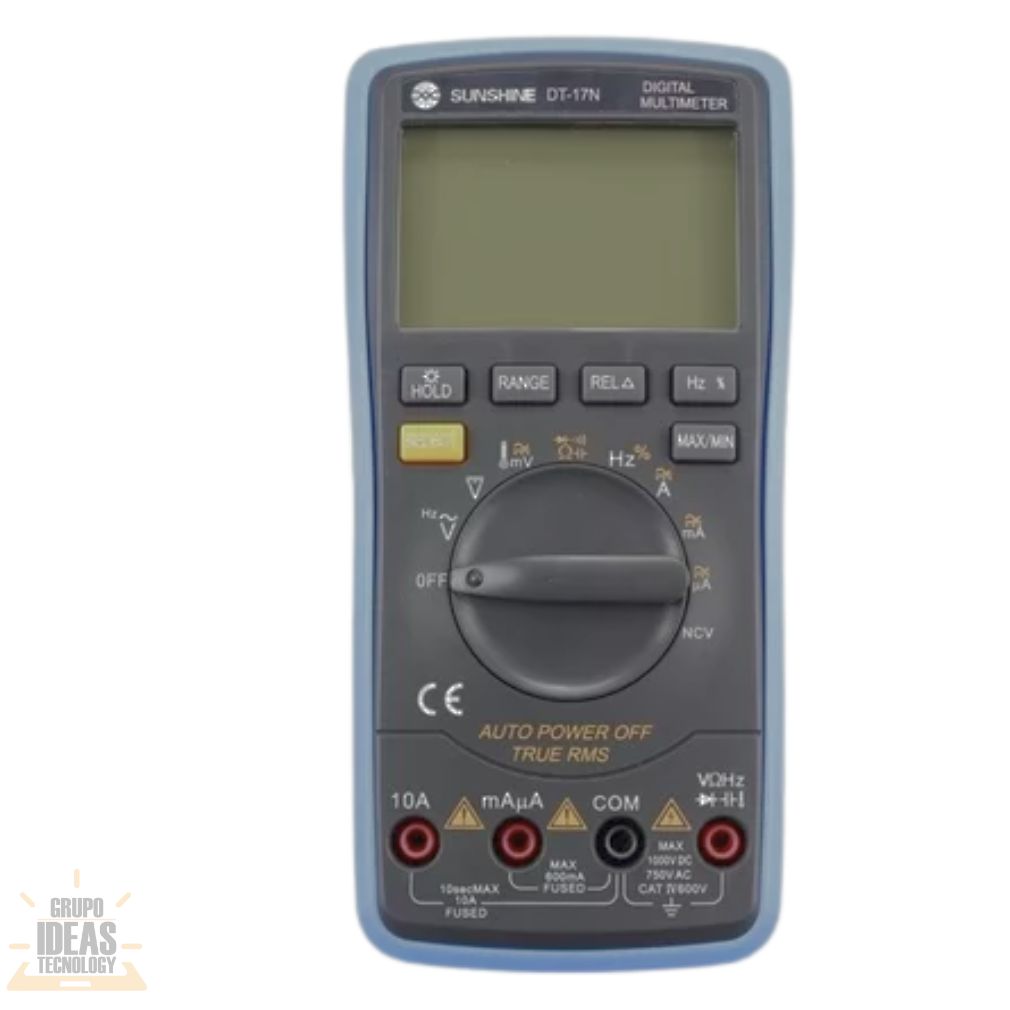 Multímetro Sunshine DT-17N Autorango práctico y preciso, ideal para mediciones eléctricas y diagnóstico electrónico.