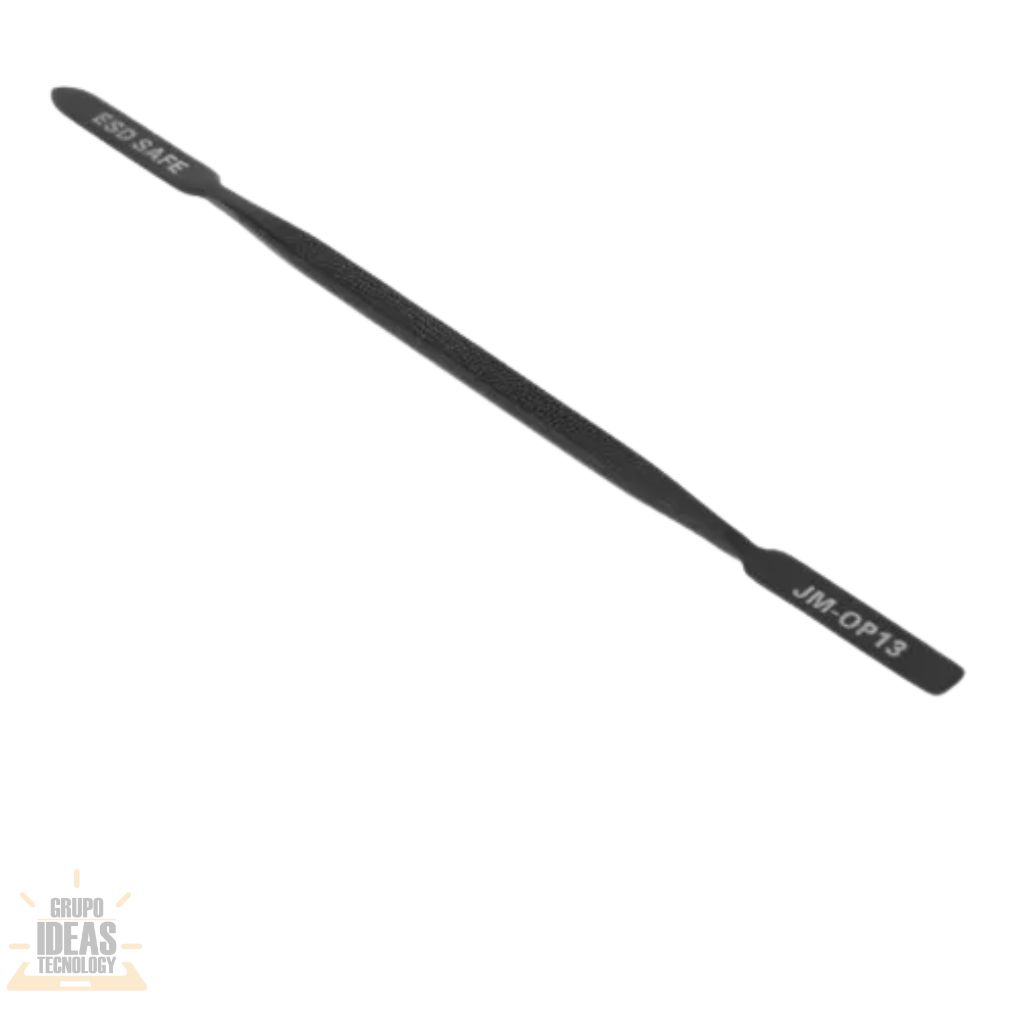 La Pala Jakemy JM-OP13 es una herramienta de precisión diseñada para la apertura y desmontaje de dispositivos electrónicos. Su formato delgado y su diseño de doble punta permiten trabajar con mayor control en teléfonos móviles, tablets y otros equipos compactos.Esta pala es ideal para separar pantallas, levantar conectores y liberar componentes adheridos. Gracias a su estructura rígida y bien balanceada, permite aplicar fuerza de manera controlada sin dañar las superficies ni los marcos del dispositivo.El cuerpo de la herramienta cuenta con una zona central texturizada que mejora el agarre durante el uso. Esto ayuda a mantener estabilidad en trabajos prolongados y reduce el riesgo de deslizamientos accidentales. Es una pala pensada para técnicos que buscan precisión y seguridad en cada reparación.