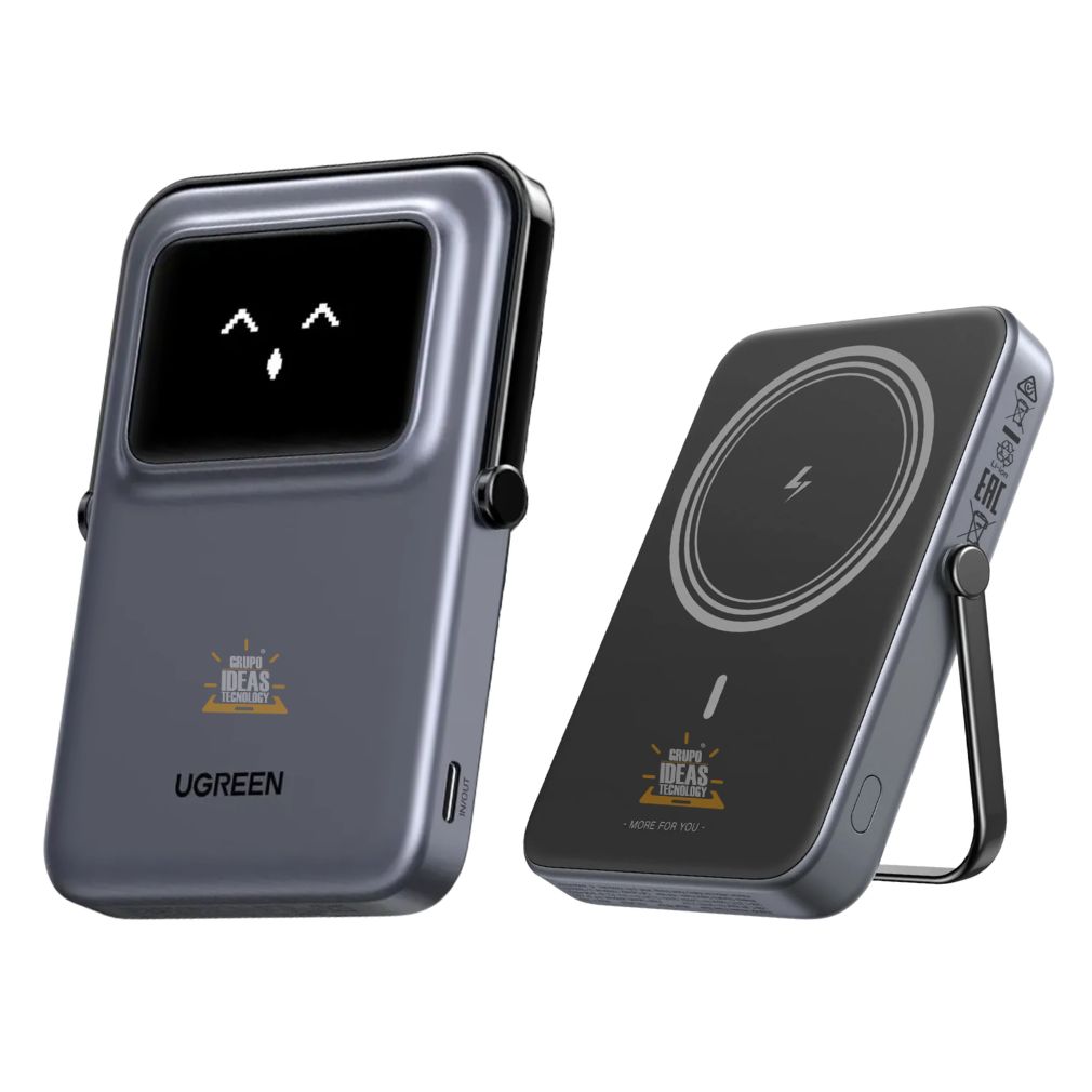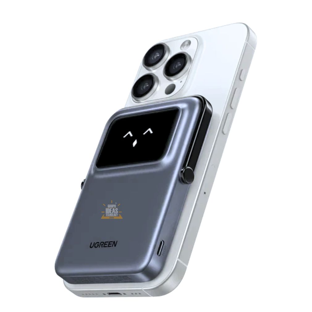 Power Bank Magnético Ugreen 10000mAh con carga rápida de hasta 20W, soporte integrado y compatibilidad con carga inalámbrica.