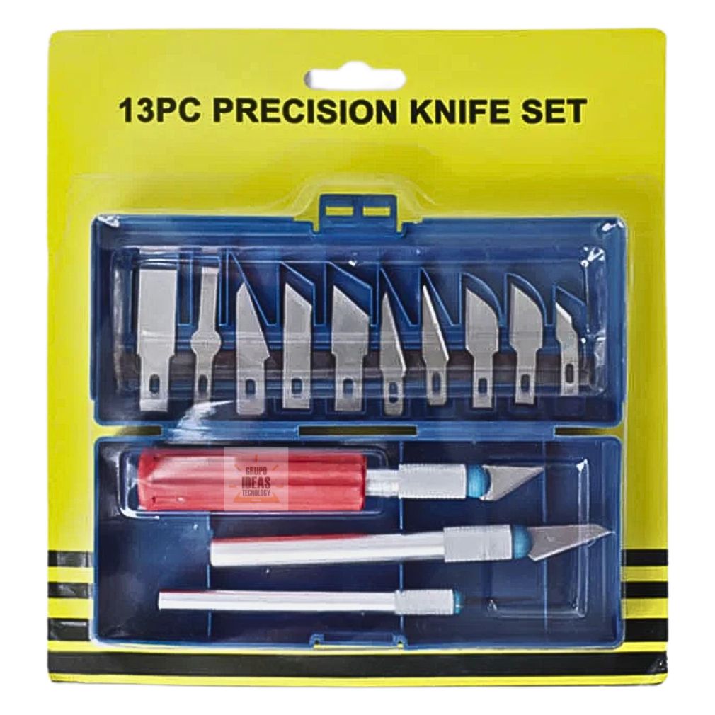 Set de Cuchillas HF x13 Piezas diseñado para trabajos de corte fino, precisión y detalle en reparación electrónica y manualidades técnicas. Es un conjunto práctico que ofrece variedad de cuchillas para distintas tareas.