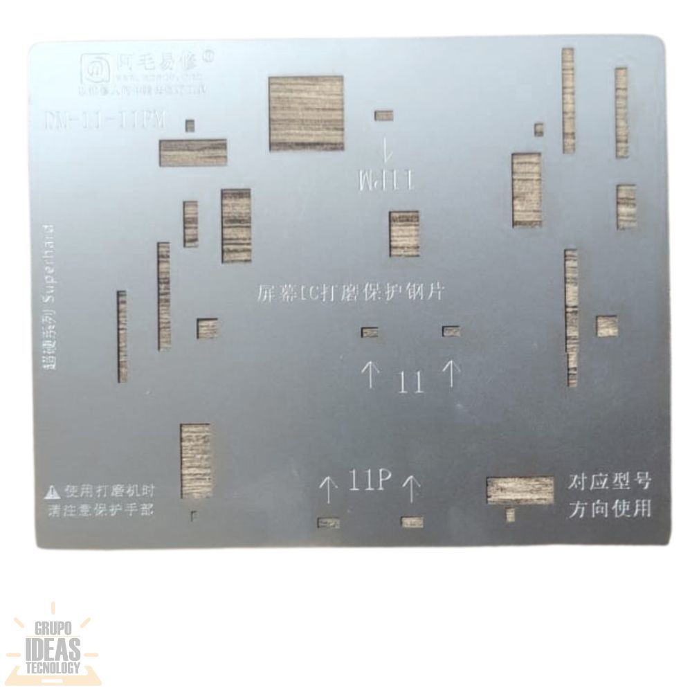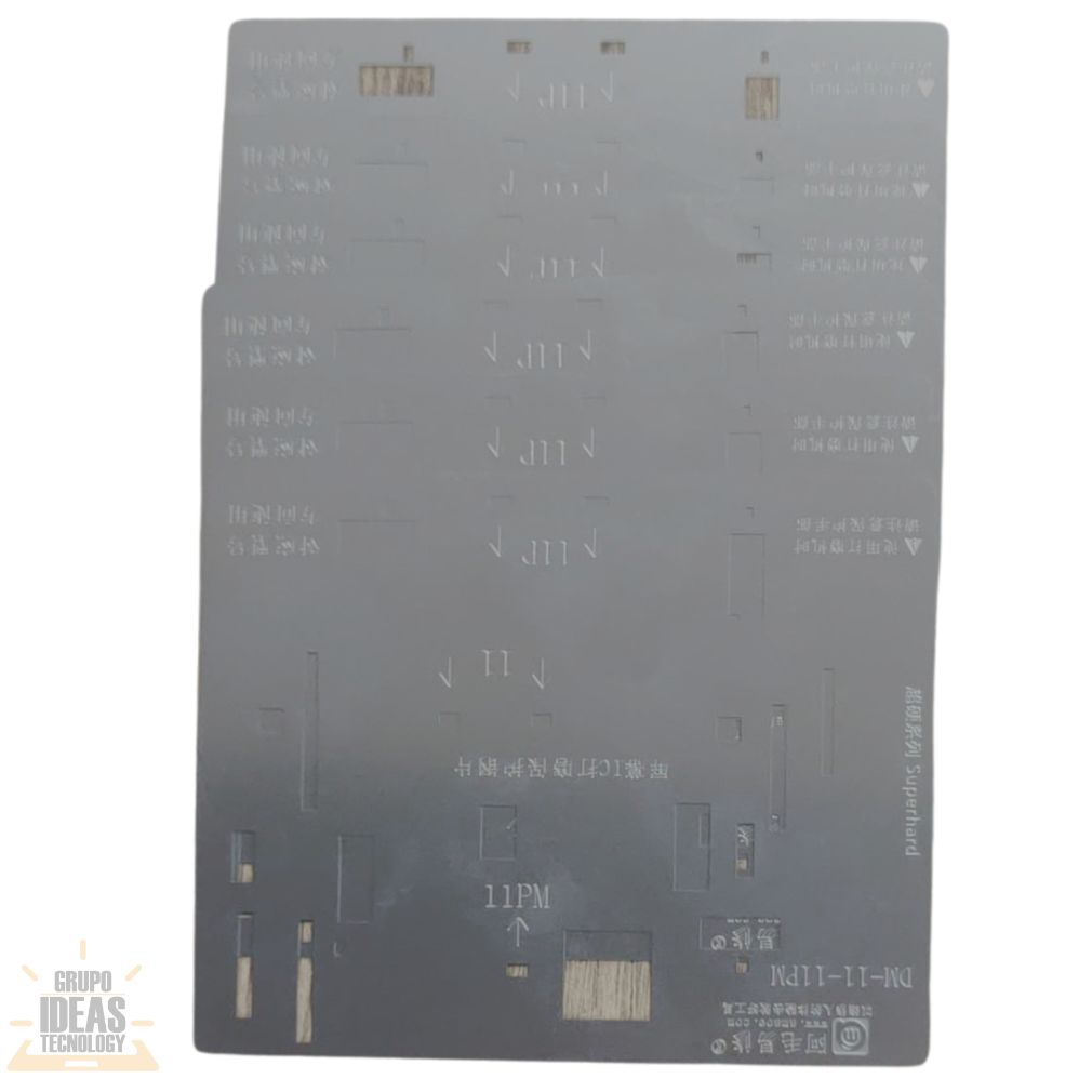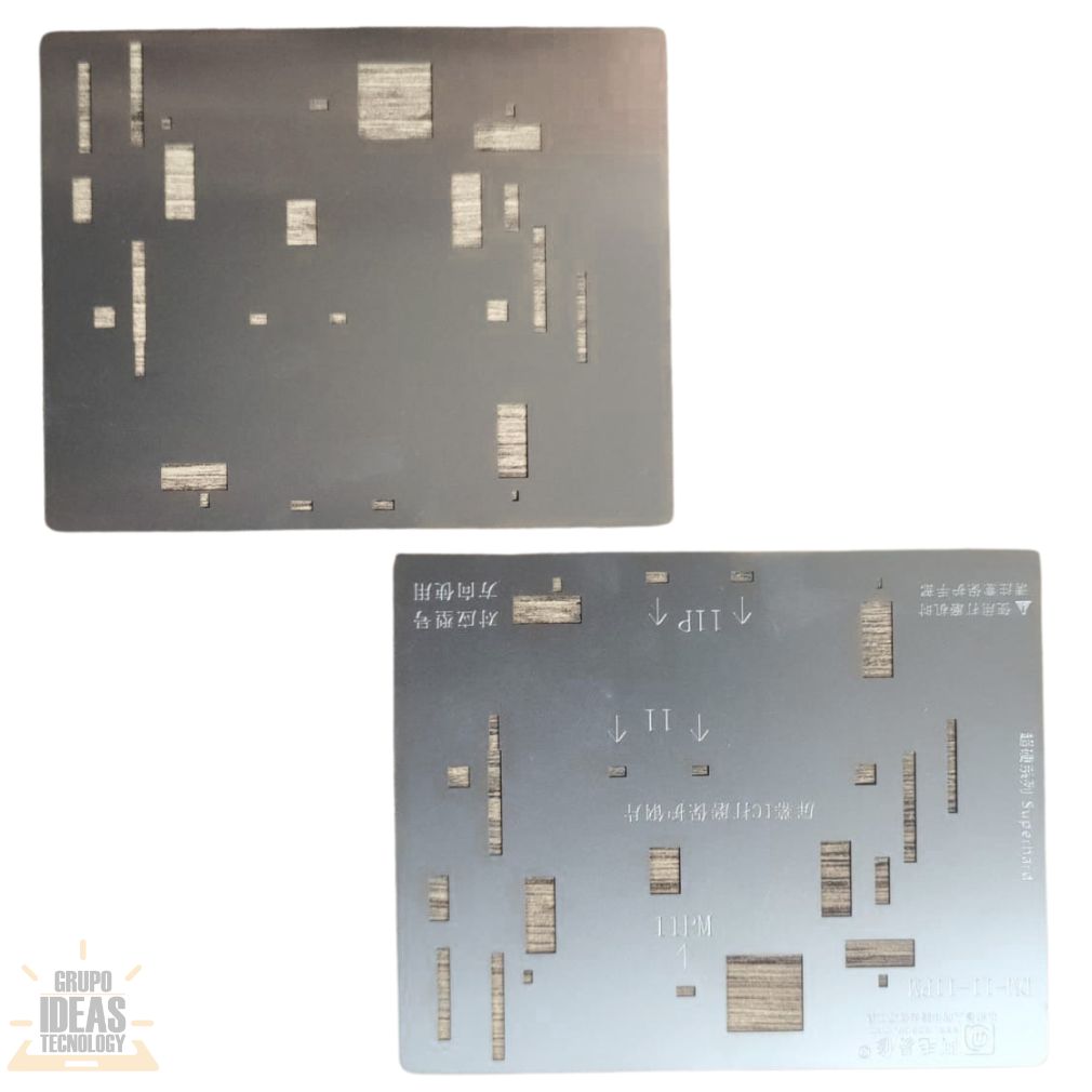 Stencil IC – LCD iPhone 11 / 11 Pro Max es una herramienta profesional para trabajos de reballing y microsoldadura en el módulo de pantalla. Está diseñado específicamente para los circuitos IC del LCD en iPhone 11 y iPhone 11 Pro Max.Este stencil permite colocar las esferas de soldadura con alta precisión. Mantiene el IC correctamente alineado durante el proceso. Reduce errores y evita retrabajos en reparaciones delicadas.El Stencil IC LCD está fabricado en acero de alta resistencia. Soporta altas temperaturas sin deformarse. Es ideal para uso frecuente en talleres técnicos y centros de reparación.Sus cortes son precisos y uniformes. Facilitan la distribución correcta del estaño. El resultado son soldaduras limpias, firmes y confiables en el módulo de pantalla.Es una herramienta esencial para técnicos especializados en reparación de pantallas iPhone. Permite trabajar con mayor seguridad y obtener resultados profesionales.