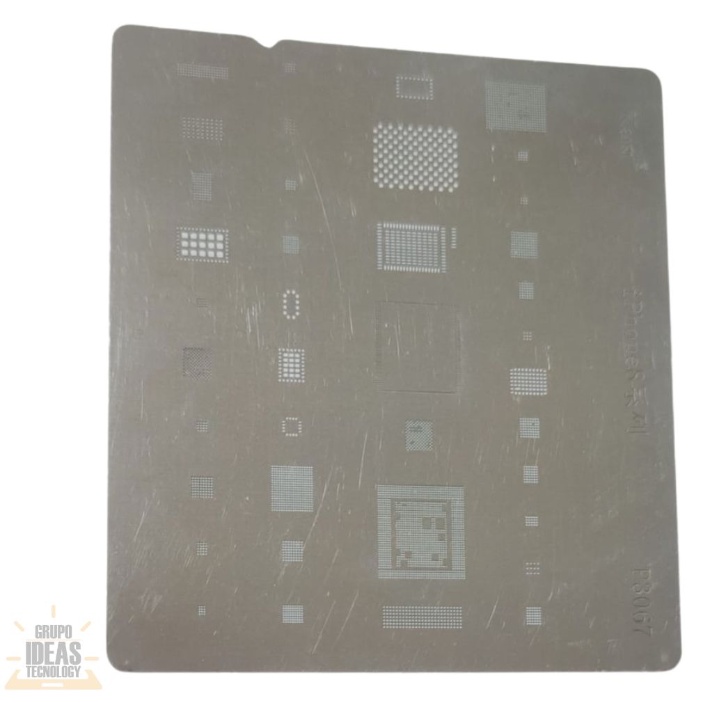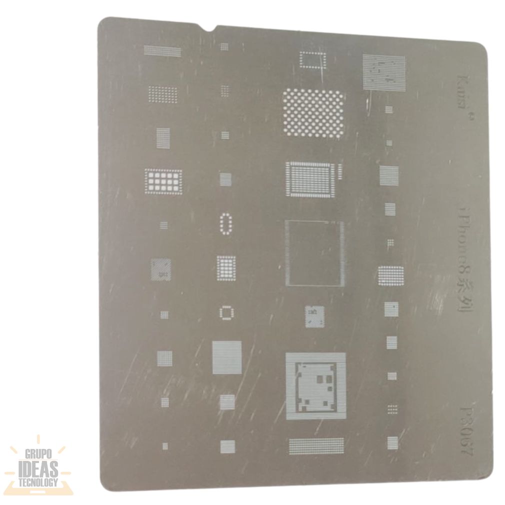 Stencil iPhone 8 para reballing; preciso, resistente y de uso profesional.