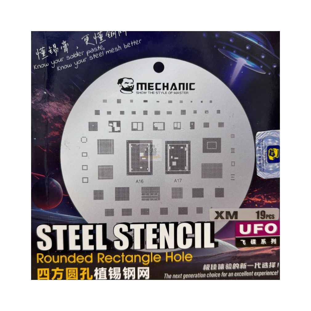 Stencil Xiaomi – 19 Unidades es un set profesional diseñado para trabajos de reballing y microsoldadura en placas base de dispositivos Xiaomi. Incluye una amplia variedad de modelos para cubrir diferentes CPUs y chips de la marca.Este set permite colocar las esferas de soldadura con alta precisión. Ayuda a mantener la alineación correcta del chip durante el proceso. Reduce errores y retrabajos en reparaciones avanzadas.El Stencil Xiaomi está fabricado en acero de alta resistencia. Soporta temperaturas elevadas sin deformarse. Es ideal para uso continuo en talleres técnicos y centros de reparación.Cada stencil cuenta con cortes precisos y bien definidos. Facilita la distribución uniforme del estaño. Mejora la calidad de las soldaduras y garantiza resultados limpios y profesionales.El set de 19 unidades ofrece mayor cobertura para distintos modelos Xiaomi. Es una herramienta esencial para técnicos especializados en microsoldadura y reparación de placas base.