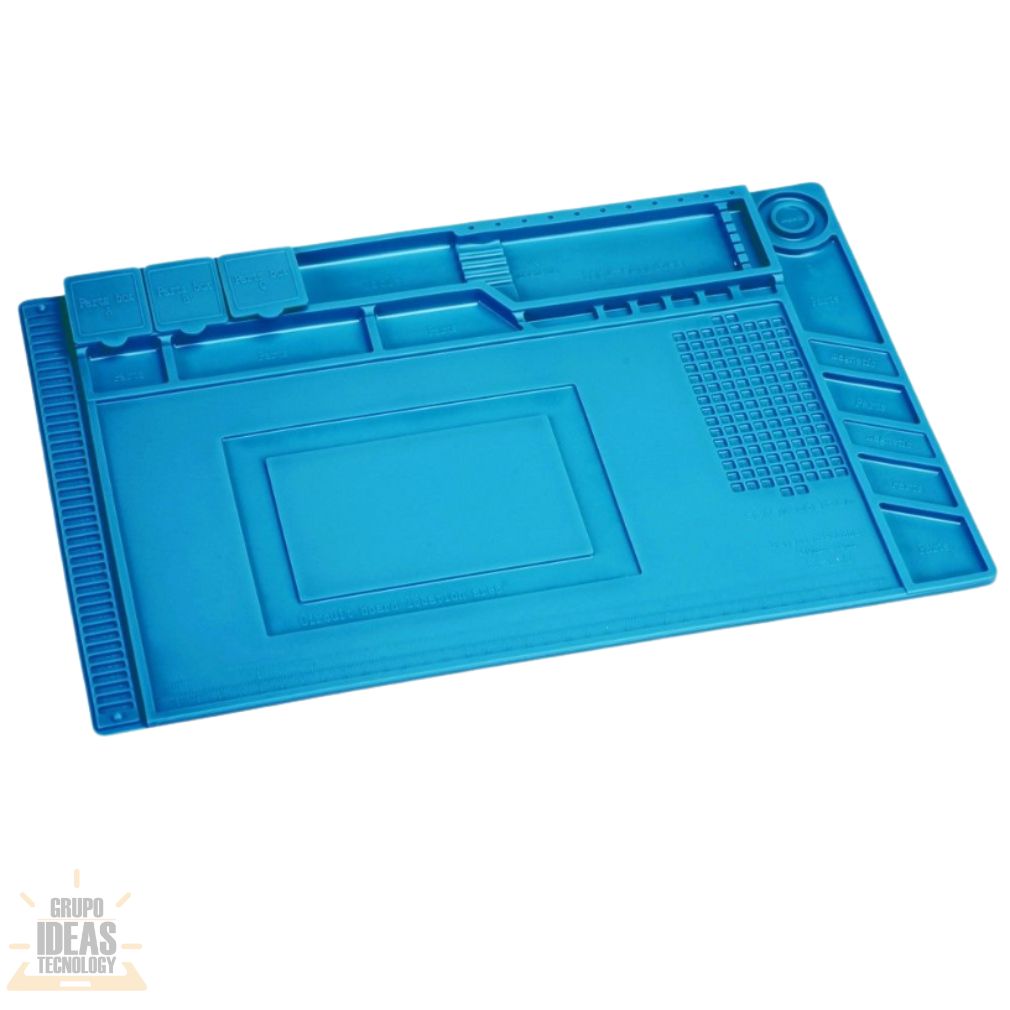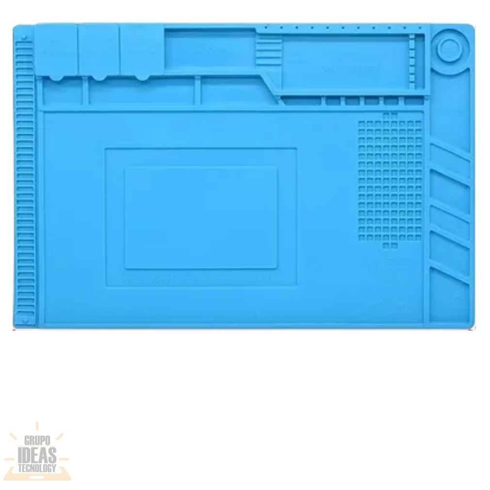 Tapete Grande es una base de trabajo diseñada para reparación electrónica y tareas técnicas. Protege la mesa y brinda un área amplia para trabajar con comodidad. Es ideal para talleres y mesas de trabajo profesionales.Este tapete ofrece una superficie estable y antideslizante. Permite colocar herramientas, pantallas y componentes sin deslizamientos. Ayuda a mantener el área de trabajo ordenada y segura.El Tapete Grande es útil para reparación de celulares, tablets y otros dispositivos electrónicos. Reduce rayones, manchas y daños en la mesa. Facilita el trabajo continuo en procesos técnicos.Su material es resistente y fácil de limpiar. Soporta el uso diario y mantiene su forma con el tiempo. El tamaño amplio brinda mayor libertad de movimiento durante la reparación.
