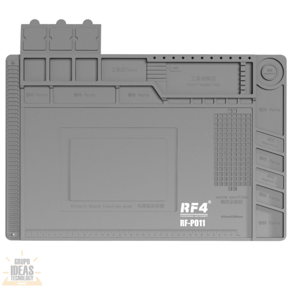 Tapete RF4 P0117 1-en-1 Gris es una base de trabajo diseñada para tareas de reparación electrónica. Ayuda a proteger la mesa y a mantener el área de trabajo ordenada mientras realizas desmontajes y trabajos técnicos.Su superficie ofrece buen agarre. Evita que herramientas y componentes se deslicen durante el uso. Esto permite trabajar con mayor control y precisión.El diseño 1-en-1 facilita la organización. Permite colocar tornillos, piezas pequeñas y herramientas en un solo espacio. Todo queda visible y al alcance de la mano.El Tapete RF4 P0117 es ideal para talleres técnicos y mesas de trabajo profesionales. Reduce el desorden y mejora la eficiencia durante el proceso de reparación.Su material es resistente y fácil de limpiar. Está pensado para uso diario y mantiene su forma con el tiempo. Es una solución práctica para trabajos continuos y detallados.